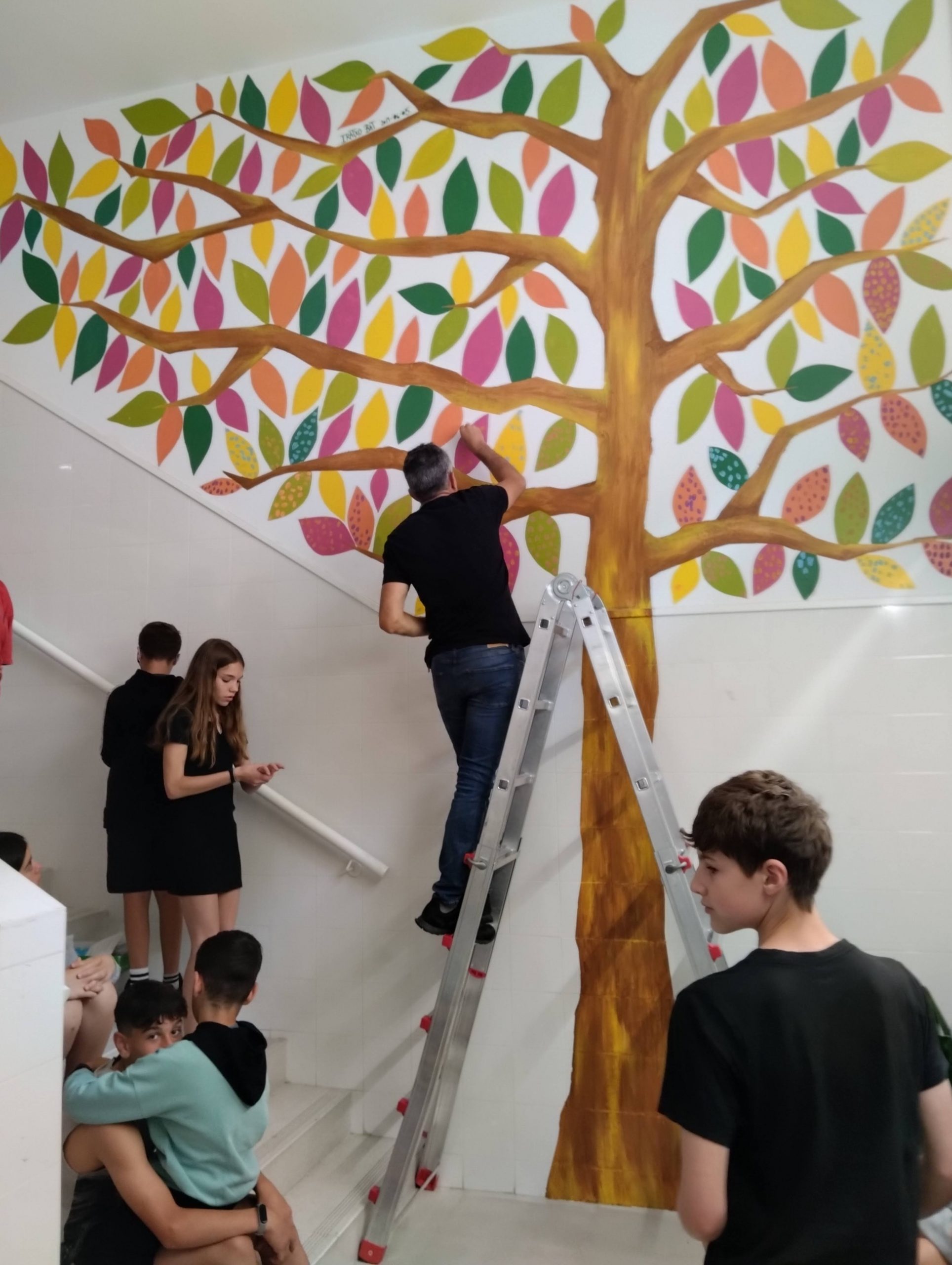 Como en años anterioes el árbol de huellas de instituto ha crecido gracias al nuevo alumnado de 1º de ESO. En este árbol todo el alumnado que pasa por el centro deja su huellas como símbolo de su paso y aportación al centro.