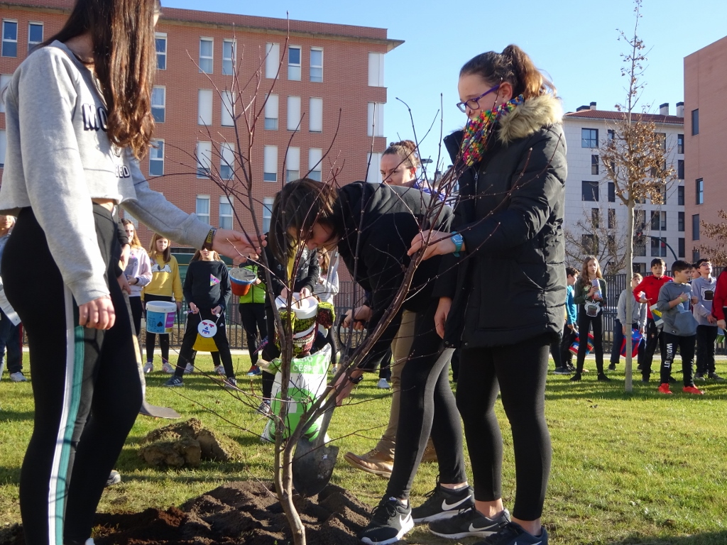 Después llegó la fiesta del alumnado. Los estudiantes tomaron el protagonismo y además de plantar un árbol en el césped de la entrada, hubo tiempo para la música, la danza y la lectura de un texto. Las clases de 1º de ESO nos deleitaron con la actuación de la batucada creada en el aula de música con una canción propia sobre Euskaraldia. También tuvimos la oportunidad de bailar una soka dantza en la que Berezi y Aimar fueron respectivamente aurreskulari y atzeskulari.